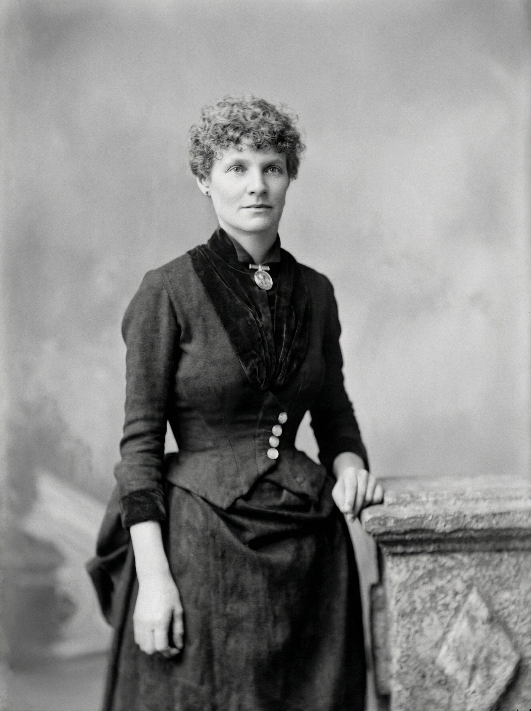 Caroline Mary Gearing was born on the 18th April 1854 in Greenwich London. She was one of the ten children of John James Gearing and Emma Gearing (Nee Sweetlove). Caroline’s father John was a sailor in the Royal Navy who was awarded the Naval General Service Medal for a campaign in Syria 1840-1841. Caroline is wearing his medal in the photo.