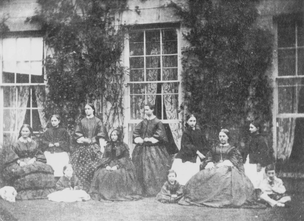 The Denshire Family From Left To Right : Elizabeth, Hester (Age 9), Isabella (Age 13), Mrs Smith (Elizabeth’s mother), Emma (Age 15), Selina (Age 11), Miss King (the governess), Mary (Age 8). Seated on the grass Henrietta (Age 6), Charles (Age 4) and William (Age 7).